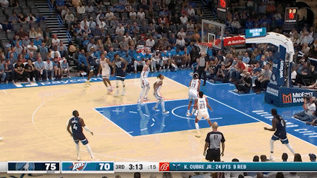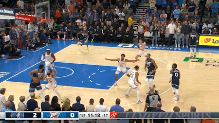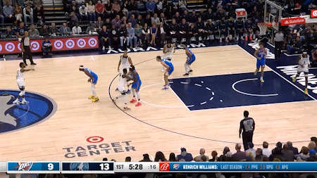 Gobert then turns and sets a flare screen for KAT to look to get a shot.