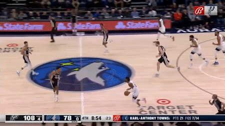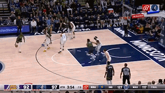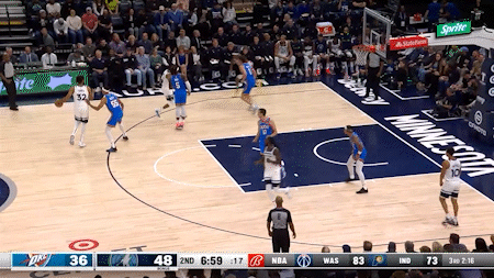 Another special out of Delay, the Timberwolves set this up with a pass to the middle and then a downscreen for the player in the corner.