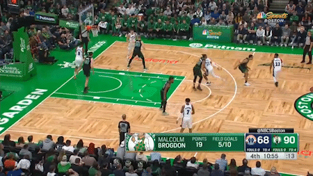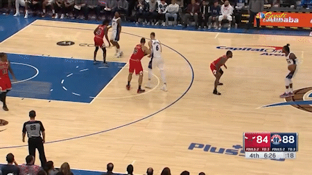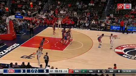 Notice how the Wizards set this up to screen their own man on the baseline exit screen here opening up a corner 3.
