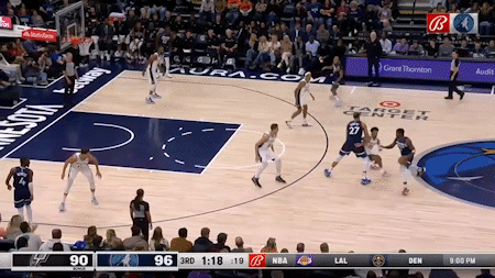 What this creates is rim pressure on the backside, then Gobert diving forces cutting help and usually this will lead to the opposite wing being open for 3-point chances.
