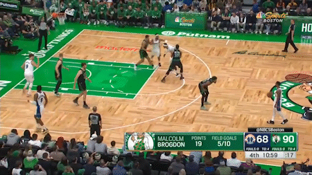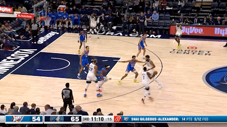 This also opens up chances to attack bigs or a mismatch in transition by having random players bring the ball up just like Vanderbilt here flipping to Beasley with Gobert on defense.