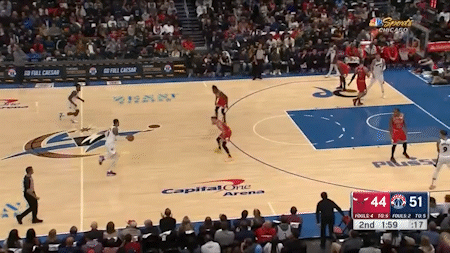 Then Morris opens up and receives a pass behind Beal when he is being pressured & denied for a quick downhill hand off.
